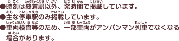 - ▲印は一部の車両がアンパンマン列車でなくなります。