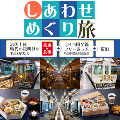 JR四国全線フリーきっぷ(特急列車普通車自由席)と高知での宿泊、そして、観光列車「志国土佐時代の夜明けのものがたり」への乗車とお食事もセットになった大変おトクなプランです。