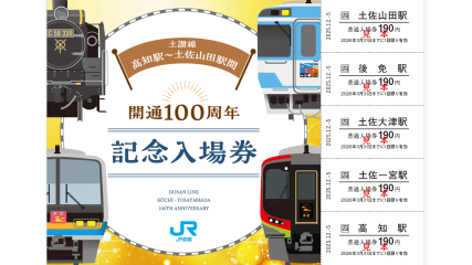 1925(大正15)年12月5日に土讃線の高知駅から土佐山田駅間が開通し、本年(2025年)で100周年の節目を迎えます。100周年を記念し、「土讃線 高知駅~土佐山田駅間 開通100周年記念入場券」を発売します。