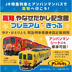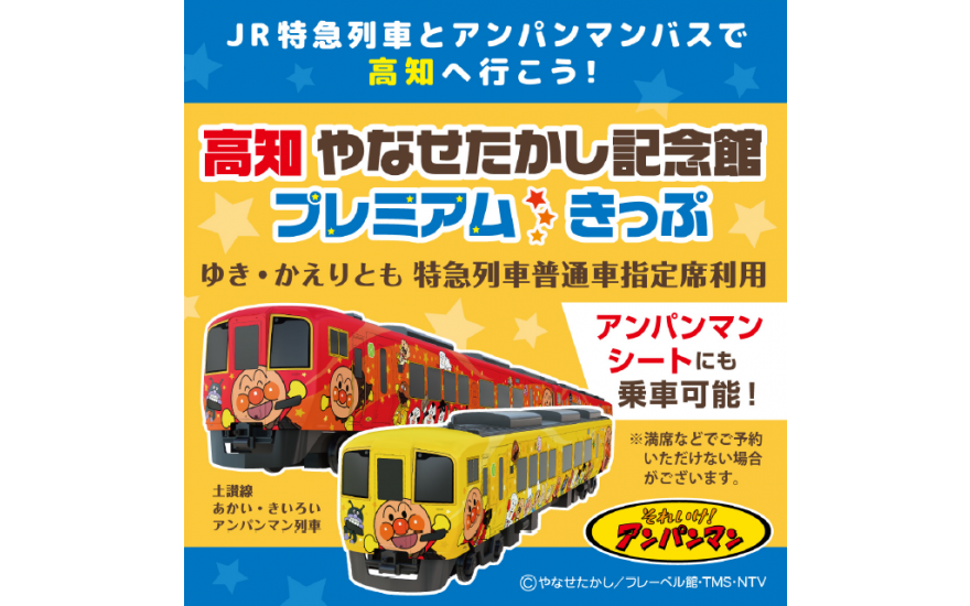 「アンパンマンミュージアム」や「詩とメルヘン絵本館」などがある『高知やなせたかし記念館』までの「ゆき券」「かえり券」、同施設の入館券、館内でのお買い物券2,000円分、韮生の里美良布で利用できる500円券がセットになった大変おトクなきっぷです。