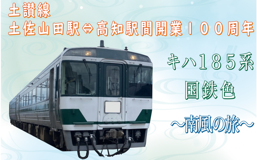 土讃線土佐山田駅⇔高知駅間が開業100周年を迎えることにあたり、記念としてキハ185系の国鉄色を使い運行いたします。
